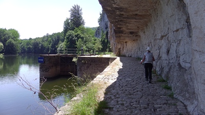 On continue sur l'ancienne voie ferrée pour traverser le Lot et gagner St-Cirq-Lapopie par le chemin de halage taillé dans la falaise.