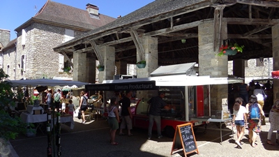 Dénivelé : 350 m+De la place, monter la grand rue puis s'engager dans la petite rue moyenâgeuse qui part à gauche et se termine par une ancienne porte fortifiée en ogive. Un peu après une maison prendre à droite et couper la grande route, D 840. Suivre le balisage jaune complété par des panneaux. A la haute tension, partir à gauche (balisage peu visible et croix loin de la fourche. Montée vers Murel. A Murel, admirer l'église et prendre le chemin qui part vers la droite à l'entrée du village. Avant que ce chemin ne débouche sur une petite route, un petit bâtiment abrite un puits. Prendre la route par la droite. Dans le grand virage, sur la gauche, le balisage fait descendre directement au moulin de Murel (2 km en moins), les courageux continueront sur la petite route et au pont sur la Doue prendront à gauche le large chemin qui mène au moulin de Murel. Un peu moins de 1 km après le moulin, sur la gauche un sentier remonte la Doue (à sec en ce mois de juillet 2019 caniculaire . Le prendre pour gagner la résurgence de la Doue appelée "l'Oeil de La Doue" - attention on traverse deux fois le lit du ruisseau qui peut être très gros à certains moments. Rebrousser chemin pour reprendre le chemin , prendre à gauche au 1er croisement puis en face au second pour remonter sur le plateau et passer à la Croix de Matthieu avant de retraver le D 840 et revenir à Martel. Entraversant la grande rue pour prendre la rue en face on arrive au centre de Martel avec sa halle et le palais de la Raimondie. Suivre la rue de droite pour retrouver le parking