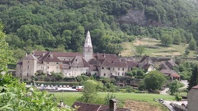 Départ de La Peyrouse, à l'entrée de Baume les Messieurs (petit parking avant le panneau, face à l'église). Cette boucle monte sur le plateau de droite, redescend dans la vallée par l"échelle" de Sermu, remonte la vallée jusqu'à la grotte, remonte sur le plateau par l'échelle de Crançon. Sur le plateau passage à la croix de Suchot pour sa vue sur l'abbaye et au parking suivant prendre le sentier qui descend derrière l'abbaye. Arrivé à la route, (D 70), la remonter jusqu'à l'épingle à cheveux pour prendre le sentier à gauche (portillon au départ et portillon à l'arrivée qu'il faut bien refermer : moutons) qui passe sous la baume pour revenir au-dessus de l'église de La Peyrouse.