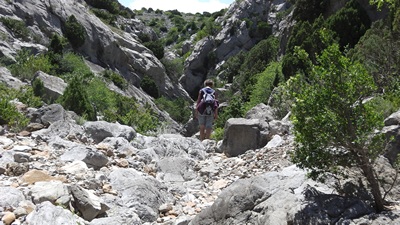 Revenir sur Opoul et prendre la route de gauche , puis le sentier à gauche. pour gagner le parking situé au pied du château. Le sentier qui monte au château part dans l'angle N/O du parking. Vister les ruines puis revenir sur le sentier et gagner la route. Prendre le sentier qui part à droite (laisser le sentier de gauche qui ramène au parking).. Suivre la piste balisée au travers de la garrigue qui rejoint une petite route qui passe au Val d'Oriola puis au mas Farinea. Après le Mas empunter la large piste à gauche qui descend dans la forêt vers le Coreo dels Vivers,que l'on franchit sur des gués. Au bas d'une vigne, la piste s'arr^te et la rando continue dans le lit du cours d'eau à sec le plus souvent. ce lit devient un canyon très étroit. On passe sous le pont de la D 9, le cnyon s'élargit et arrive sur un gué cimenté: prendre la piste qui monte à gauche et ramène à la D 9 non loin du lieu où on est garé.Bonne rando, lotois