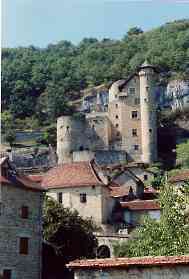(Dans le voisinage, un peu en retrait de la falaise qui le protège, se dresse le château de Laroque Toirac