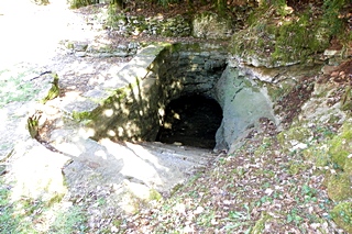 lavoir, sous un rocher et un puits avec un