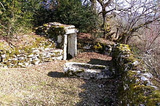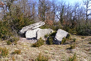 gauche en bordure de route se trouve un dolmen . Sa