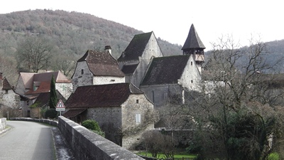 Belle arrivée sur Espagnac par le GR 651. Le retour par la rive gauche qui surplombe le Célé passe sous le château de Goudou et à l'entrée de Corn passe à côté du "travail" bien conservé.