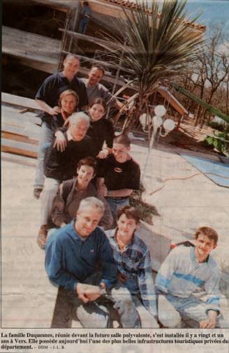 En ces vacances de Pâques la plupart des gîtes sont occupés. Ici, cest une Nordiste, familière des lieux, qui insiste pour que la famille Duquesnes vienne boire lapéro le soir-même, là un autre gars de Lille a participé à la création dun site Internet. Avec un autre vacancier, il a troqué le short pour le bleu de travail et, armé du marteau piqueur, il participe, pour le plaisir, au chantier ! « Nous avions bien prévenu que nous étions en travaux, mais nos clients sont tout de même venus. Nous leur signalons lavan-cement de notre chantier, photos à lappui, via Internet » (1), poursuit Olivier. Une inauguration-mariage « Ici, certains vacanciers ne quittent pas le centre alors quinitialement ils avaient envisagé de visiter la région : nous proposons toute la journée de nombreuses activités, pour tous les âges. Le prix des activités est inclus dans la location des chalets. « Au début, il fallait avoir la foi », reconnaît Jean, le père qui, en 1979 avait acheté ce centre embryonnaire à lépoque, créé en 1963 par M. Duval. En cette année 2000, il prend un nouveau virage. La famille Duquesnes croit en leur situation géographique et en un tourisme de qualité, prôné dans le Lot, favorisé par une autoroute qui rapproche un peu plus Vers de Lille (60 % des vacanciers viennent du Nord). Bon présage: lune des premières manifestations quabritera la nouvelle salle sera le mariage dOlivier et de Fanny, une Ariégeoise, mais pas une vraie. Dans ses veines coule du sang de lAisne (cest aussi dans le nord de la France). Lhonneur est sauf. Jean-Louis BARRERE. Le Site Internet du Mas de Saboth est : |