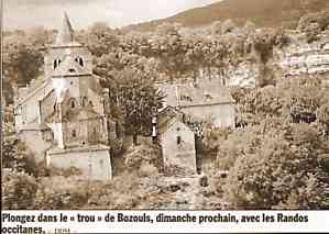 • Dimanche prochain, le 17 septembre, c'est Bozouls (Aveyron) qui sera à la fête.Entre Rodez et Espalion, le Dourdou a creusé le causse comtal de façon impressionnante, jusqu'à tailler un « trou » haut de 1 04 mètres.La balade offrira la découverte d'un patrimoine architectural varié (églises, fontaines, calvaires...) et le parfum sauvage des chênes et des genévriers. Rendez-vous à partir de 8 h 30 à la salle de l'Espace Denys Puech.