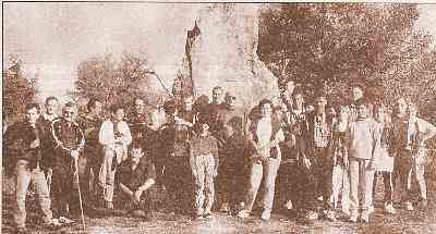 Le groupe au menhir de Bélinac autour de Jacques Codefy maire de Livernon et de Maurice Cayrol président de i'association. DDM